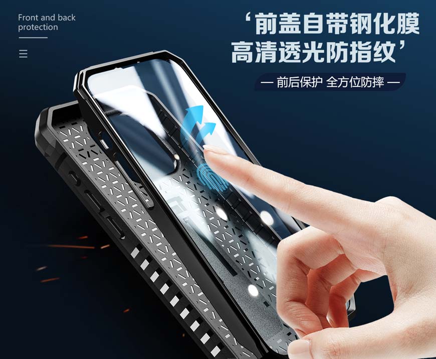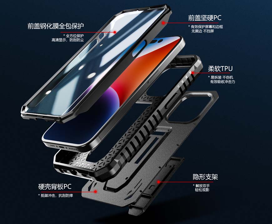 特点说明:隐形支架,全包保护,防摔耐用,自带钢化膜,软硬结合