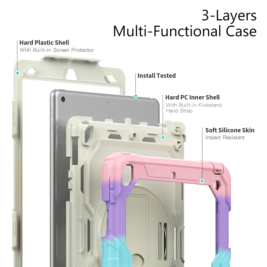 iPad迷彩硅胶+PC 手腕带背带防摔壳