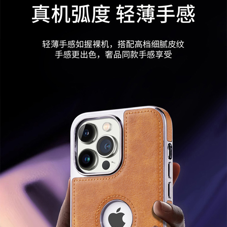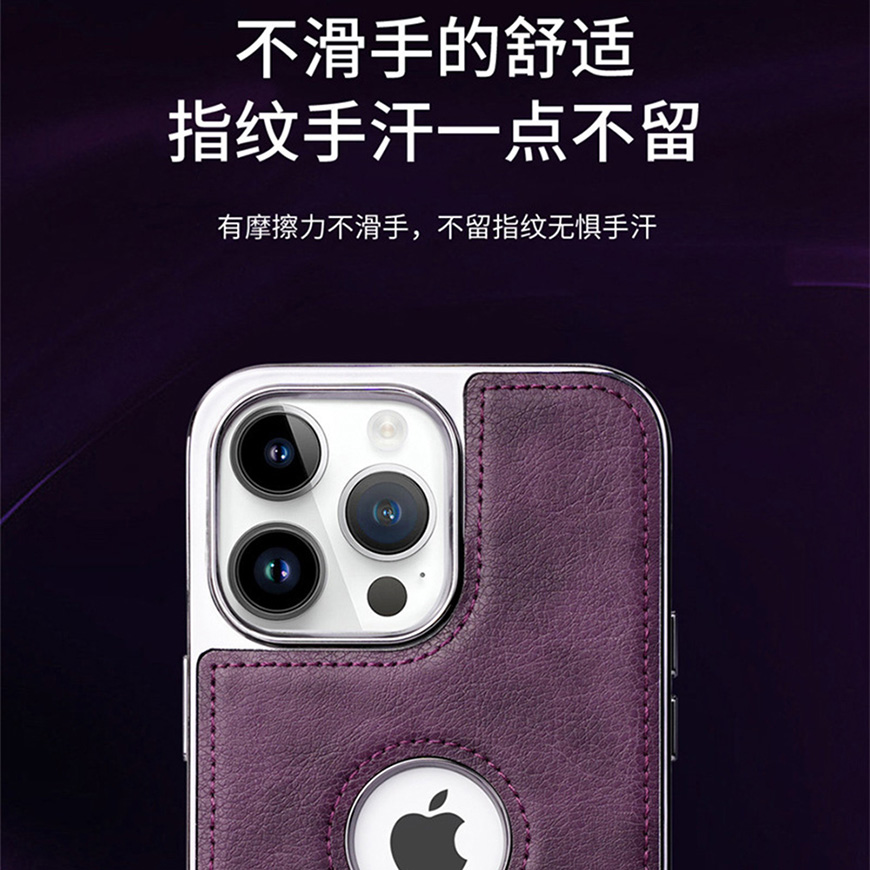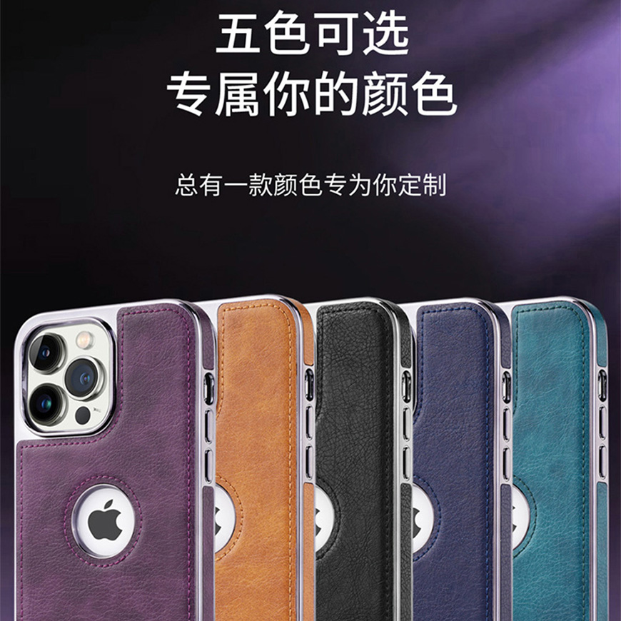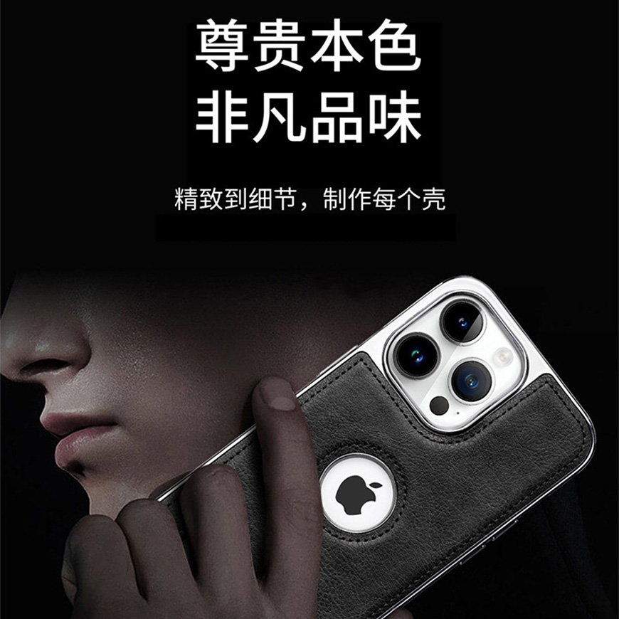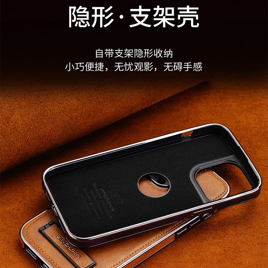 适用iPhone电镀商务皮套隐形支架防摔保护套